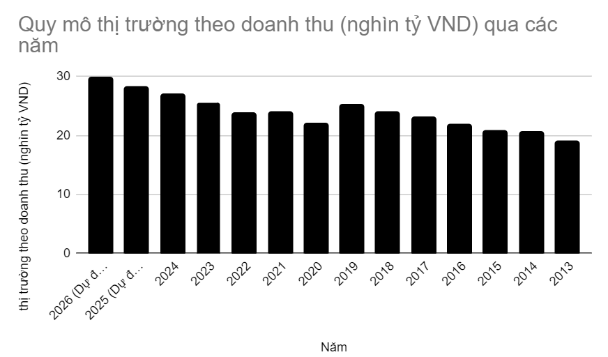 | Năm | Quy mô thị trường theo doanh thu (nghìn tỷ VND) |