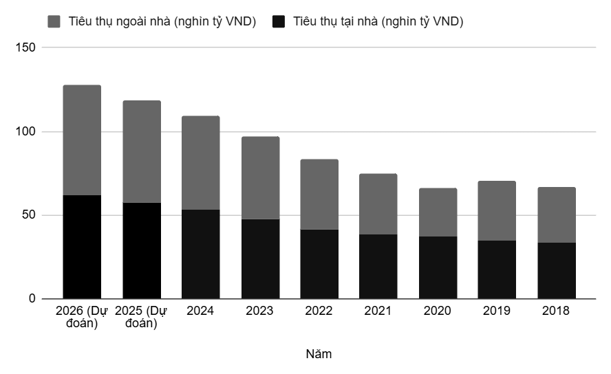| Năm | Tiêu thụ tại nhà (nghìn tỷ VND) | Tiêu thụ ngoài nhà (nghìn tỷ VND) |